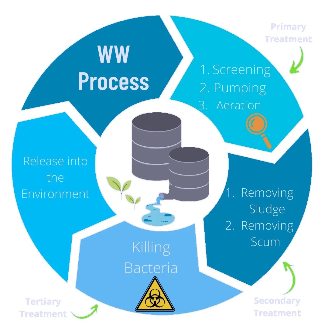 Wastewater is full of toxins, feces, chemicals and many other wastes that have made it to the water by natural or human activities. Water that is collected must eventually be released to the environment, but before that can happen, the water must be treated at WW plants.